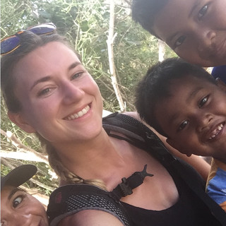 De volgende dag komen we na een stukje rijden aan op de berg richting Nyang Nyang beach. We moeten de berg aflopen en zijn blij dat we onze gympen hebben aangedaan! Het is meteen zichtbaar dat deze plek nog niet bedolven is onder het toerisme en de jonge locals vinden het dan ook interessant om ons te zien. Na een kwartiertje lopen zijn we er en het strand is de hike meer dan waard! Wat een paradijsje met geweldige golven en een wit strand!